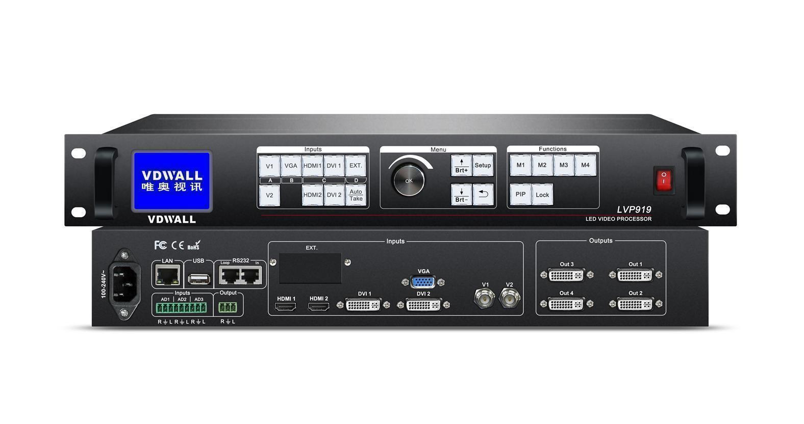 4.Multiple analog and digital mixed signals input:2xCVBS、1xVGA、2xHDMI、2xDVI、1xExt