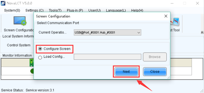 3. Click 【Screen Configuration】 Icon, select 【Configuration Screen】, then click 【Next】, like shown in Figure 3.