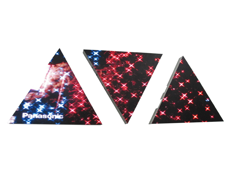 AMB triangle LED module, the display screen that can be spliced into polygons and spheres according to the actual needs, It is a technical improvement with outstanding characteristics and display progress in the field of LED creative display, and unique splicing display idea.
